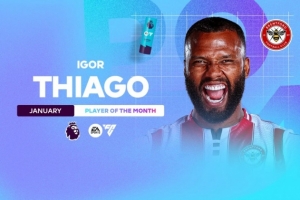 继2025年11月获奖后,蒂亚戈在一月份又攻入五粒英超进球,从而赢得一月奖项。在此期间,小蜜蜂在战胜埃弗顿和桑德兰的比赛中,继续保持着出人意料地冲击前六名的势头。