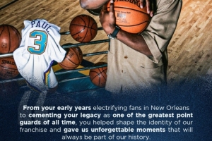 从你在新奥尔良的早年岁月,以激动人心的表现赢得球迷喜爱,到最终成为史上最伟大的控球后卫之一,你不仅塑造了我们球队的身份,还为我们留下了无数难忘的瞬间,这些都将永远载入我们的历史。