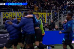 体育资讯02月15日讯 国米vs尤文第90分钟,泽林斯基破门,国米此时3-2领先了!