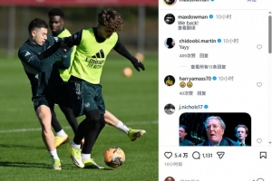 体育资讯2月15日讯 阿森纳小将道曼今天更新Instagram,晒照庆祝回归训练。