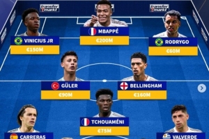 前锋:维尼修斯、姆巴佩、罗德里戈