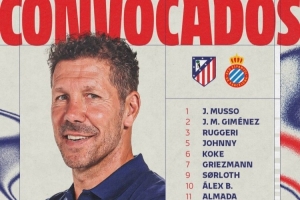 前锋:7-格列兹曼、9-瑟尔洛特、11-阿尔马达、19-阿尔瓦雷斯、20-朱利亚诺·西蒙尼、22-卢克曼