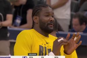 下一篇: 詹姆斯三分命中后积极跟进补篮得手,可惜加罚未进。
