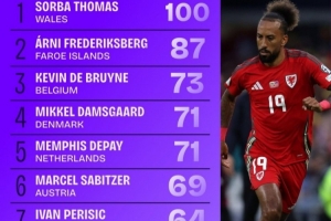 24直播网11月20日讯 世欧预小组赛结束,禁区次数榜公布。威尔士边锋索尔巴·托马斯以100次高居榜首,法罗群岛的弗雷德里克斯伯格87次次席,比利时球星德布劳内以73次位列第三。该数据体现了球员在进攻端的突破与威胁能力。