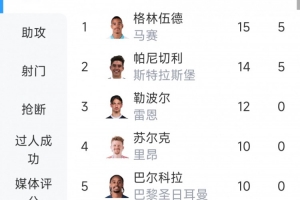 上一篇: 格林伍德本赛季于各项赛事中左右脚进球均达到10球以上,成为五大联赛中唯一达成此成就的球员。