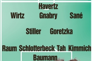 24直播网03月27日讯 《图片报》预测了德国与瑞士友谊赛的首发阵容。德国队由鲍曼把门,哈弗茨领衔锋线;瑞士队则由科贝尔担任门将,恩博洛出任前锋。两队均派出了主力阵容,旨在为即将到来的欧洲杯热身。