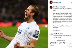 体育资讯3月27日讯 英格兰前锋凯恩在社交媒体上发文,纪念自己11年前的英格兰队首秀时刻。