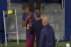 亚马尔因不满门将教练对其不传球的指责,拒绝庆祝并愤怒离场,引发争议。