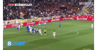 上半场补时阶段,塞维利亚角球机会,古德利俯身冲顶破门!