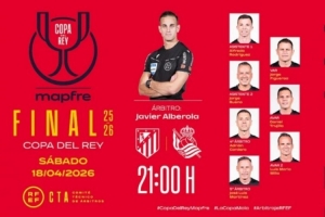 24直播网04月13日讯 西班牙国王杯决赛裁判组公布。哈维尔·阿韦洛亚将担任主裁,执法马竞对阵皇家社会的比赛。VAR由豪尔赫·费格罗亚负责。比赛将于北京时间4月19日3:00进行。