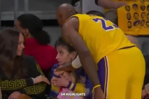 GIF-詹姆斯上前安抚被界外球砸到的小女孩
