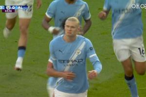 体育资讯4月20日讯 曼城vs阿森纳,比赛第65分钟,奥赖利横敲,哈兰德后点包抄破门!曼城2-1领先阿森纳!
