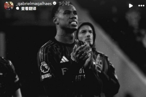本场比赛阿森纳遭遇对手补时绝平,10连胜终结。加布里埃尔赛后在社媒晒照鼓励球队:“枪迷们我们很快再见,我们会以更强姿态回归,感谢大家的支持!”