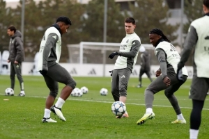 上一场首发的球员进行恢复性训练,其他球员则进行强度更高的训练。马斯坦托诺参加了部分合练,阿拉巴则在室内训练,卡瓦哈尔和米利唐继续进行他们的恢复计划。