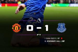 体育资讯11月25日讯 英超第12轮最后一场较量,曼联0-1不敌十人埃弗顿。