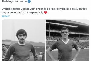 24直播网11月25日讯 11月25日,曼联官方发文,深切纪念于同日离世的两位传奇球星乔治·贝斯特与比尔·福克斯。他们分别是2005年与2013年逝世的俱乐部功勋。曼联表示,两位传奇的功绩与精神将永存。