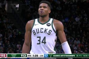 这时,火箭已经打了雄鹿17-5,比赛只剩1分钟