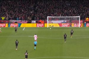 埃泽发动长传后,诺伊尔继续向前的出击没能拦下足球,反倒送给对手一个完全的空门,马丁内利笑纳大礼打空门轻松得手,帮助枪手杀死比赛悬念!