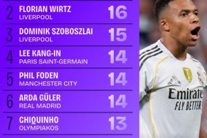 上一篇: 本赛季欧冠射门次数榜:姆巴佩居首,格林伍德次席,哈兰德第三