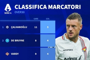 体育资讯12月2日讯 德国转会市场统计了本赛季年龄30+球员在意甲的进球数量,并列出榜单,恰尔汗奥卢5球居首,德布劳内、瓦尔迪、贝拉尔迪4球。