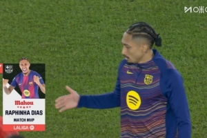 体育资讯12月3日讯 巴萨在本轮西甲3-1击败马竞,拉菲尼亚为球队扳平比分。
