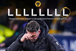 本赛季英超,狼队14轮未尝胜绩,2平12负仅得2分,五大联赛“独一档”,意甲(维罗纳)和德甲(美因茨)的垫底球队都有6分,西甲(皇家奥维耶多)和法甲(欧塞尔)的垫底队拿到了9分。
