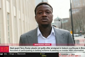 体育资讯12月9日讯 据ESPN法律分析师瑞安·史密斯报道,热火后卫特里·罗齐尔今日在布鲁克林联邦法院出庭,对非法体育博彩起诉书中的两项联邦指控表示不认罪,他以300万美元的保释金获释。