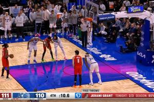 下一篇: 班凯罗落后2分,强突内线以一打二造成犯规,可惜两罚不中。