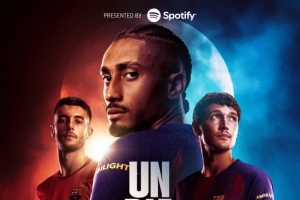巴萨官方社媒发布了为此役制作的海报,拉菲尼亚、克里斯滕森、霍安·加西亚出镜。