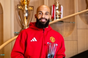 体育资讯12月15日讯 PFA(英格兰职业球员协会)更新社媒动态,晒出曼联前锋姆伯莫领取英超10月球迷票选最佳球员奖杯的照片。