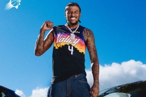 体育资讯11月12日讯 太阳官方晒出了杰伦·格林上身球队新赛季城市版球衣的写真,并配文附带了带货链接。