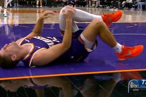 GIF-库明加突破过程中 撞到了吉莱斯皮的膝盖内侧!