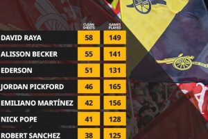 体育资讯12月26日讯 据Opta统计,拉亚已出战149场英超比赛,接近达成150场里程碑。拉亚英超首秀以来联赛零封58场,英超门将同期最多。