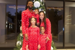 体育资讯12月27日讯 昨天,热火前锋维金斯的妻子在INS晒出了一家五口全家福,庆祝圣诞节。