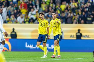 体育资讯12月31日讯 在凌晨进行的一场沙特联比赛中,利雅得胜利2-2战平达曼协作结束了2025年的征程,菲利克斯攻入一球,并制造了胜利的第二球。