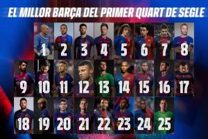 巴萨官方挑选了100名球员(2000年1月1日至2025年12月31日期间在巴塞罗那效力)参加,分为25个号码。也就是说,每个号码将有4名球员竞争,其中只有一人能进入最终的最佳阵容。