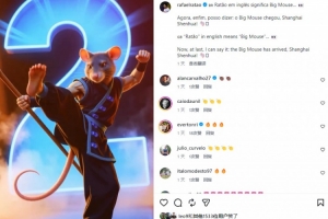 今日拉斐尔在社媒晒出一张老鼠为主题的海报纪念自己加盟申花,他写道:“我的姓拉唐,其意为‘大老鼠’。现在我终于能够说出这句话:‘大老鼠抵达上海申花!’”