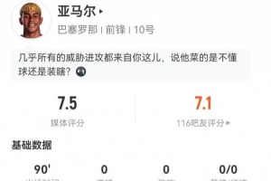 下一篇: 霍安·加西亚本场贡献6次全场最多的扑救,评分8.4全场最高,堪称叹息之墙。