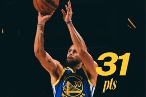 本场比赛,勇士球星库里表现出色,虽然上半场表现一般,但第三节突然爆发狂轰生涯第45次单节20+,在34分钟的时间里,投篮18中8,三分球12中6,罚球9中9,拿下31分2篮板5助攻1抢断的数据,正负值+5。