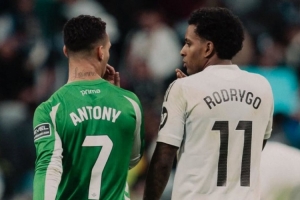 罗德里戈在个人社媒晒出与贝蒂斯球员安东尼的合照,配文写道:“很高兴见到你!”