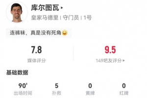 体育资讯1月9日讯 皇马在本轮西超杯对阵马竞,库尔图瓦本场数据如下: