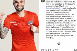 随着2025年的结束,告别也随之到来,这意味着我们共同度过的美好篇章将告一段落。谢谢你,梅州客家,感谢球迷们的大力支持和热情好客,我和我的家人们都很感谢这里的一切。