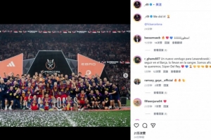 他也在赛后通过社媒晒出全队捧杯合照,并配文:“我们做到了!🏆@巴塞罗那俱乐部”。