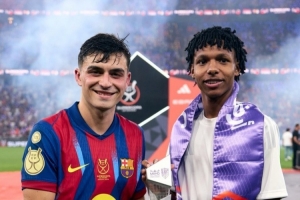 体育资讯1月12日讯 西超杯决赛,佩德里助攻莱万破门,巴萨3-2击败皇马,捧起冠军奖杯,赛后佩德里接受了媒体的采访。