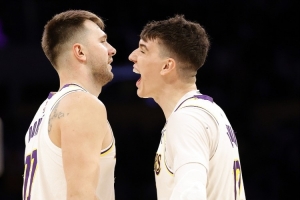 上半场湖人三分20中12,命中率高达60%,其中东契奇6中5,拉拉维亚3中3。