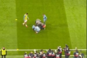 体育资讯01月17日讯 皇马vs莱万特赛前,姆巴佩热身时遭赫伊森误伤,长时间接受队医治疗后,一瘸一拐起身。