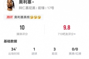 下一篇: 盘活全队!奥利塞第56分钟登场1射3传连造4球,拜仁82分钟后进3球