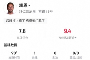 体育资讯1月18日讯 拜仁在本轮德甲5-1逆转莱比锡,凯恩本场数据如下: