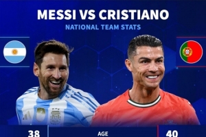 体育资讯11月15日讯 德国转会市场社媒晒出图片,对比了梅西、C罗、姆巴佩、哈兰德的国家队数据。