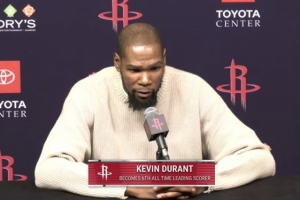 24直播网01月19日讯 火箭战胜鹈鹕赛后,杜兰特被问及对成为历史得分榜第六的自己的建议。他表示,要保持自信,坚持下去,因为放弃很容易。他劝勉年轻时的自己,艰难的日子不会持续太久,既不要自视过高,也不要妄自菲薄,并庆幸最终一切顺利。